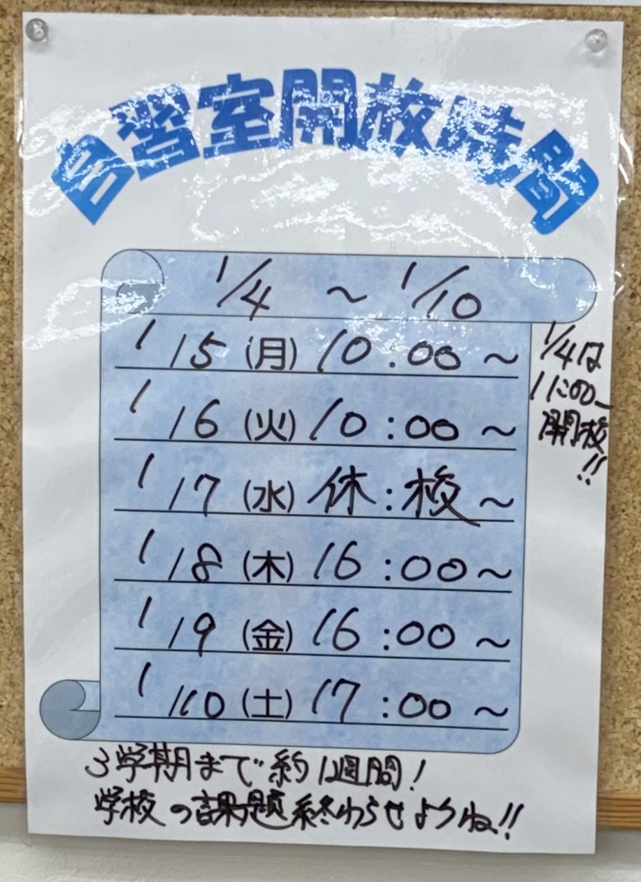 年が明けると始業式も目の前ですよ。夏休みとは異なり、