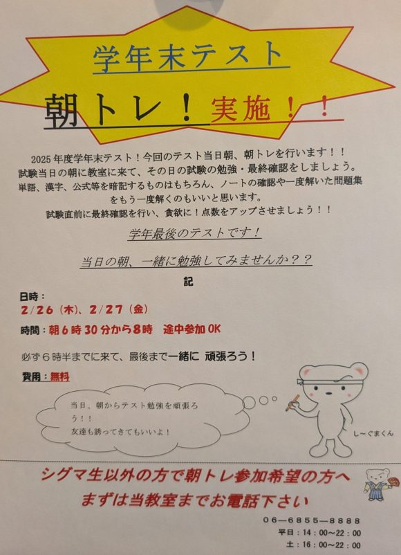 豊中市熊野町・東豊中地域の学習塾、個別指導シグマ東豊中泉丘校です!