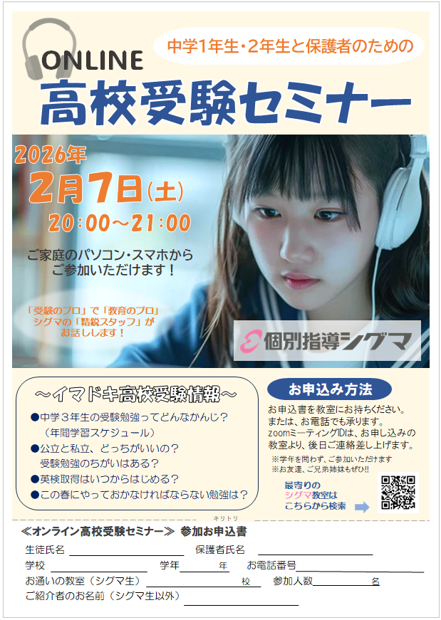 シグマでは、中学1年生・2年生と保護者様を対象にした、