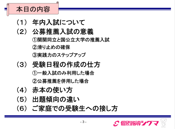 ↑9月28日実施「大学入試セミナー」の内容