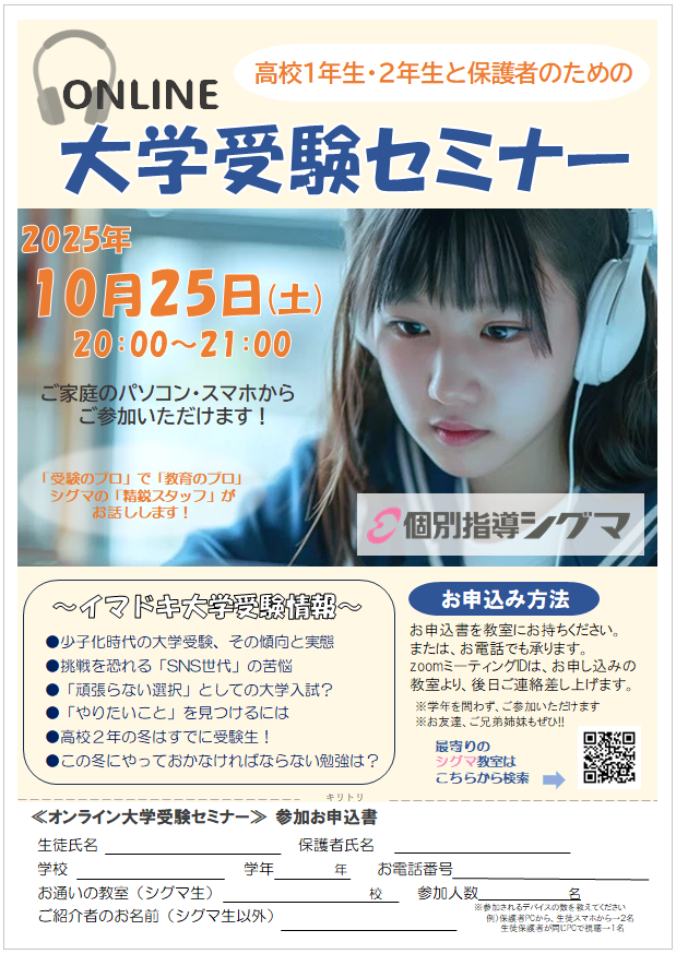 シグマでは、高校1年生・2年生と保護者様を対象にした、
