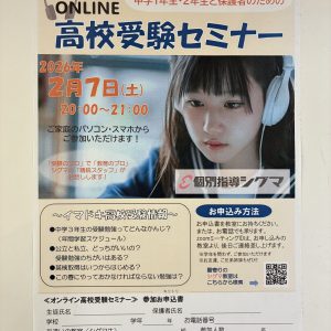 こんにちは! 箕面市小野原西地域の学習塾、個別指導シグマ箕面小野原校の清岡です! 昨年の秋に高1・高2生対象に 「大学受験セミナー」 を実施しました!! 今回は &…