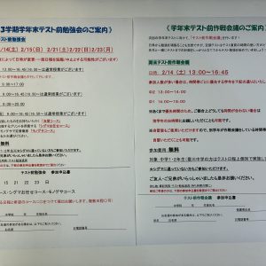こんにちは! 箕面市小野原西地域の学習塾、個別指導シグマ箕面小野原校の清岡です! 2月は中1・中2生の学年末テストがあります!! 箕面小野原校では 恒例のテスト前イベント実施します…