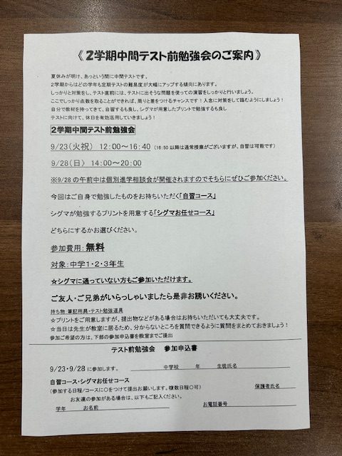箕面市小野原西地域の学習塾、個別指導シグマ箕面小野原校の清岡です!