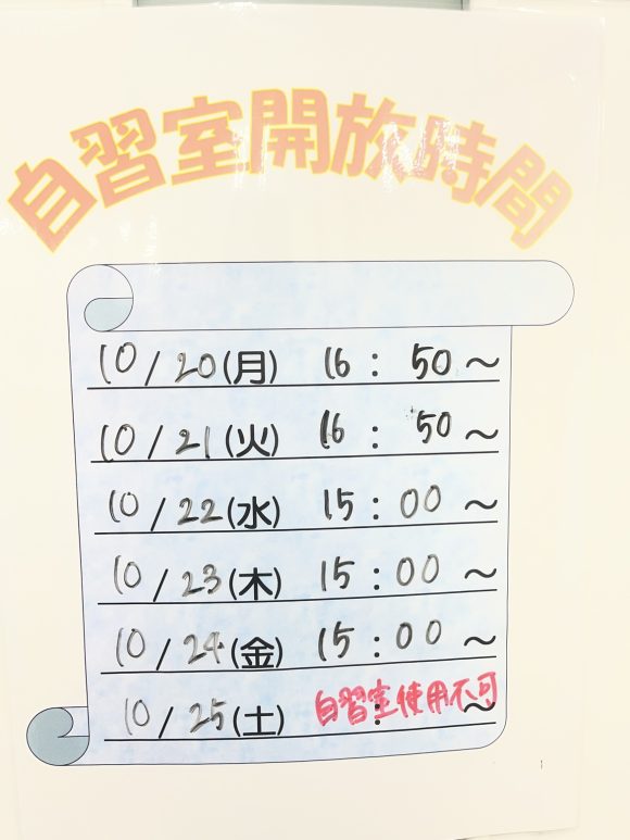 高校生はついにテスト期間に入り、自習室に来てくれる生徒さんも増えて先生もうれしいです(o^―^o)