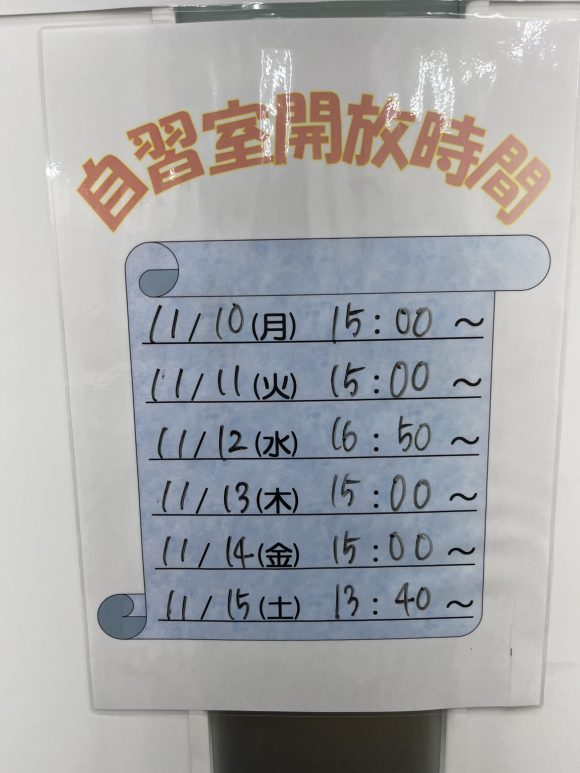 【11/3(月)~11/8(土) 自習室開放時間📢✨】