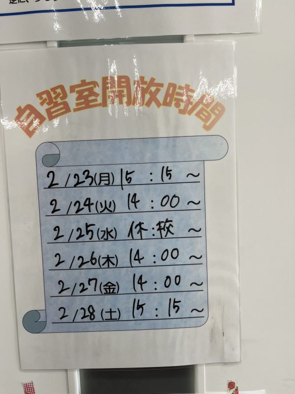 それでは今週の自習室開放時間です❤