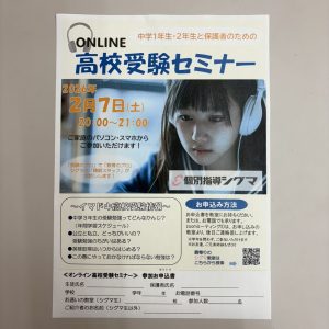 こんにちは! 個別指導シグマ、ブログ担当です。 私立高校入試まで2週間を切りました。 中学3年生は今、 志望校の過去問を解き、苦手分野を強化し・・・と、 受験にむかって最後の追い込みの真っ最中です。 保護…