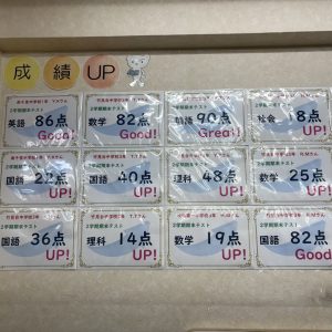 こんにちは! 豊中市寺内地域の学習塾 【個別指導シグマ 緑地公園駅前校】です🐻 2学期期末テストの成績アップの掲示をしました💭 これは一部になりますが、10点以上up、80点以上の掲示をしています! 今回は中学生の一部にな…