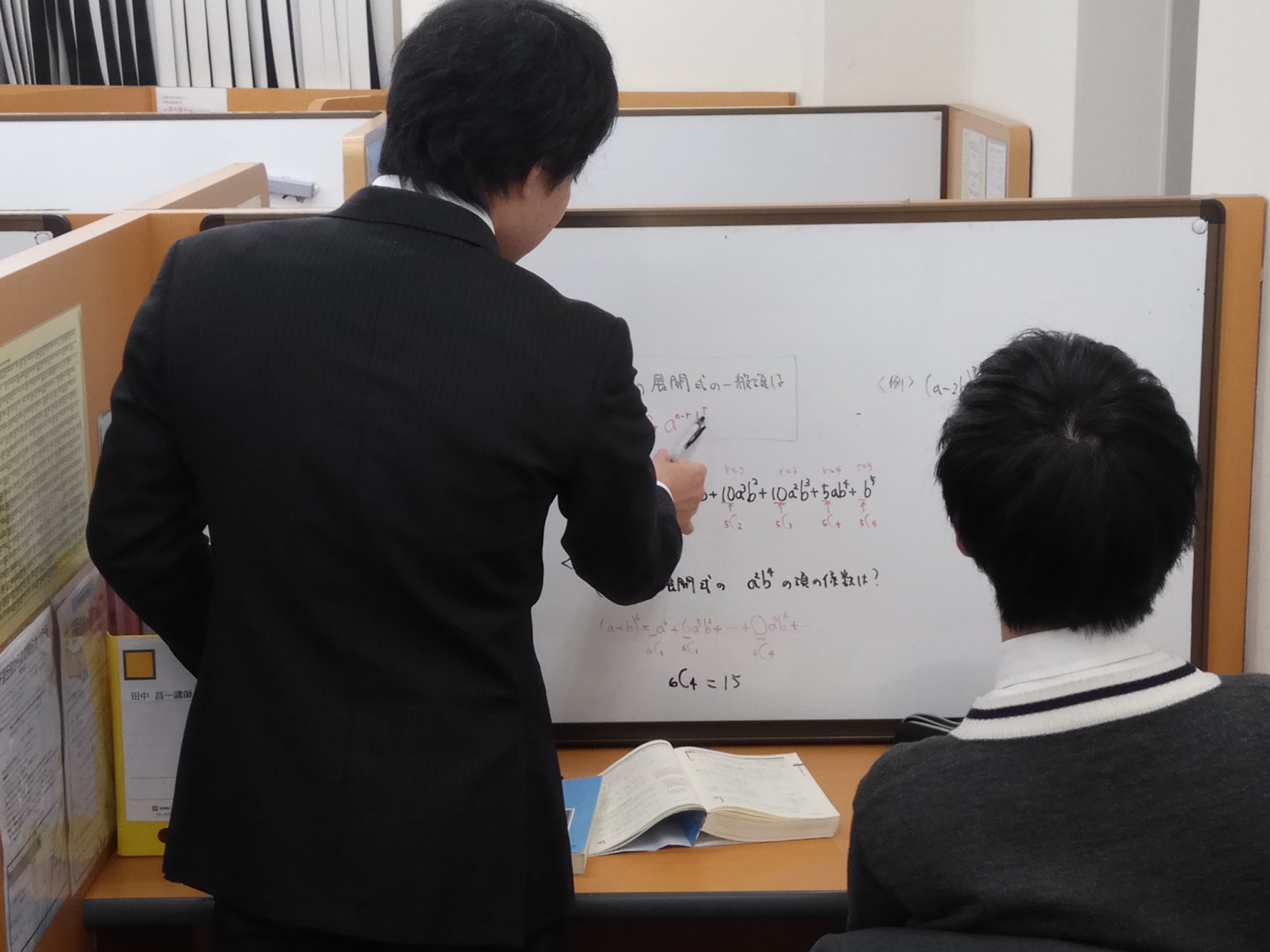 当塾では、写真にもある意匠登録済の個室1対1型ワイドブースでリラックスして質問できます。