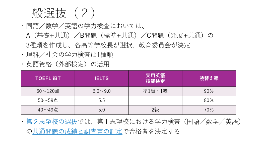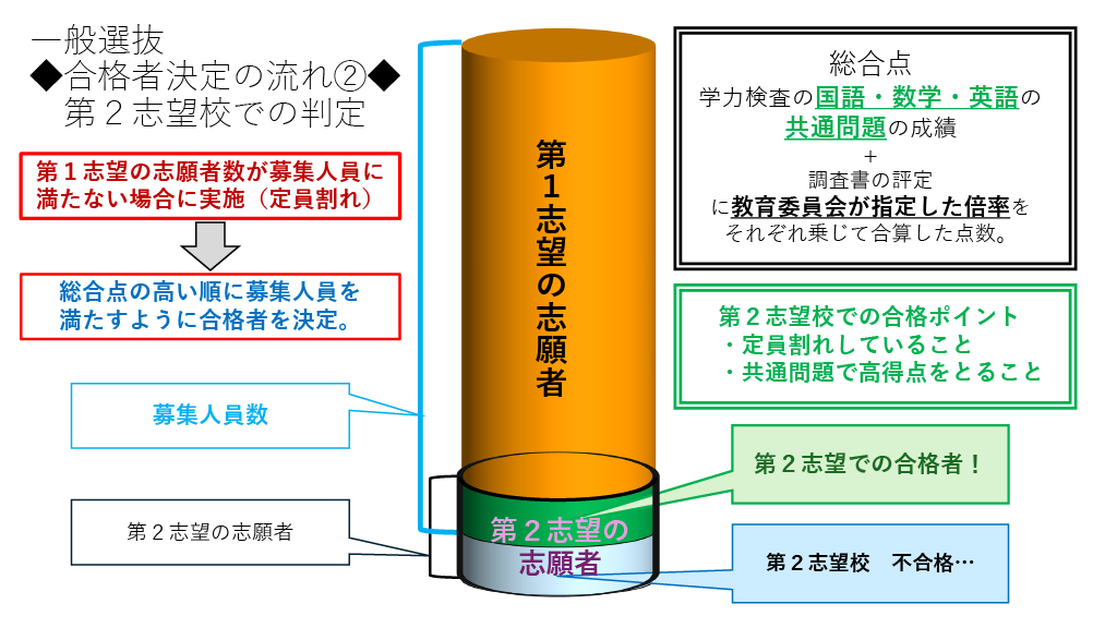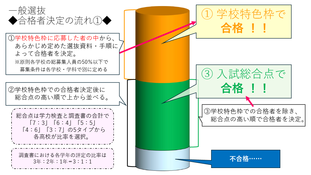 一般選抜の第1志望校の判定に関する流れは、次の通りです。