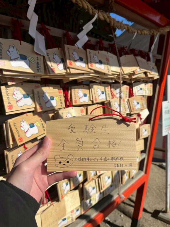 受験生の皆さんに少しでも力を届けたい。そんな思いで、講師と教室長で合格祈願のお参りにも行ってきました。