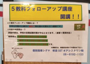 個別指導シグマ吹田SSTオアシスタウン校の岡本です。