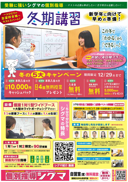 シグマの冬期講習は、冬休み期間だけに限定されないのが特長です。