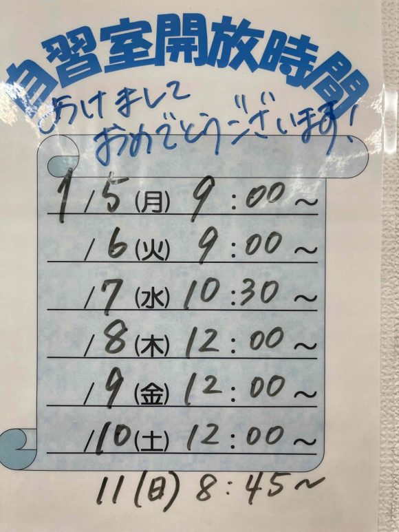 本日、2026年1月4日 10時より教室を開校しております!