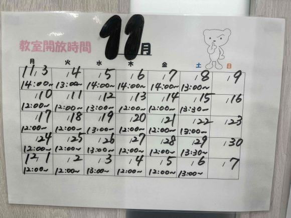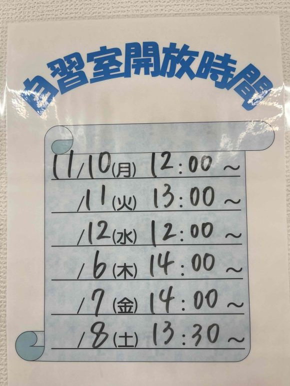 テスト前の自習利用などは大歓迎ですので、時間を確認してどんどん教室を活用してくださいね٩(๑^o^๑)۶!