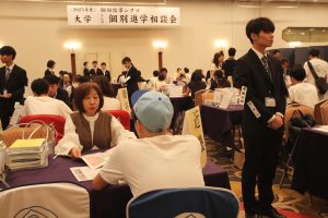 参加大学ごとに設置されたブースで、それぞれの 入試担当の先生方が、進学や進路実績、入試の傾向、教育方針、校風やクラブ活動など、各大学の特色について、個別に説明してくださいました。